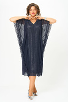 27.03 Vilatte Платье жаккардовой вязки с кашемиром D32.111 синий-бежевый