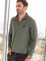 Vilatte Поло из фактурного трикотажа с застежкой на молнию U49.028 т.оливковый
