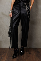 Прямые брюки выполнены из трикотажа джерси. Модель дополнена боковыми карманами и поясом на резинке сзади. Заутюженные стрелки визуально вытягивают силуэт. Изделие хорошо держит форму, отлично тянется и почти не мнется во время использования. Идеальный вариант в офис или в повседневный классический стиль.