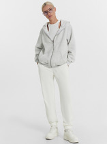 Брюки выполнены из премиального футера трехнитки без начеса. Модель дополнена эластичным поясом на резинке и хлопковым шнурком с золотистой фурнитурой. По бокам два кармана. Наличие эластана в составе гарантирует формоустойчивость и износостойкость изделия. Изделие сочетается в костюме с худи D49.054