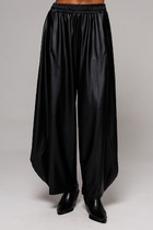 Прямые брюки выполнены из плотного трикотажа джерси. Модель дополнена боковыми карманами. Посадка на талии фиксируется эластичным поясом на резинке. Заутюженные стрелки визуально вытягивают силуэт. Изделие хорошо держит форму и почти не мнется во время использования.