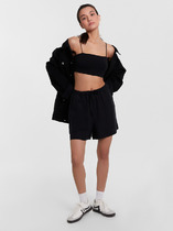 Шорты с легкой декоративной стиркой выполнены из эластичного денима. Модель с ложным гульфиком и поясом из эластичной резинки со шнурком из основного полотна. За счет эластана изделие хорошо тянется и гарантирует комфорт и формоустойчивость. Подходит для любой фигуры.