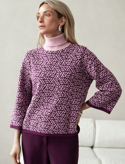 Совместные покупки Нижневартовск Женская одежда Джемперы, свитеры, водолазки — Vilatte Свитер жаккардовой вязки с кашемиром D34.208 пурпурный