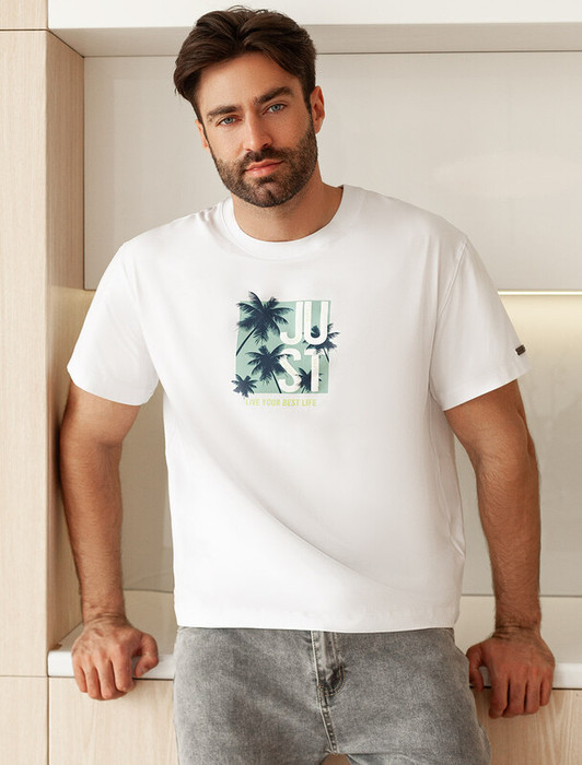 Совместные покупки Нижневартовск Мужская одежда Футболки — Vilatte Свободная футболка с авторским принтом U49.048 белый_just