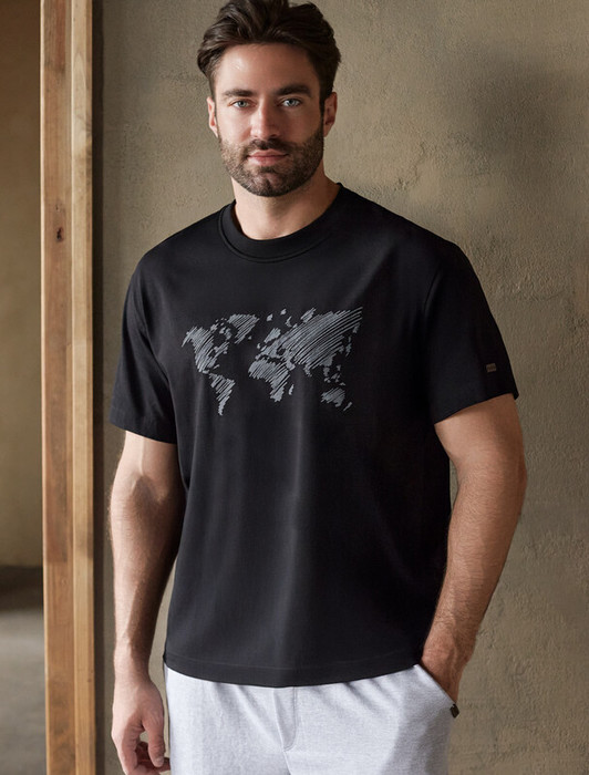 Совместные покупки Нижневартовск Мужская одежда Футболки — Vilatte Свободная футболка с авторским принтом U49.048 черный_карта