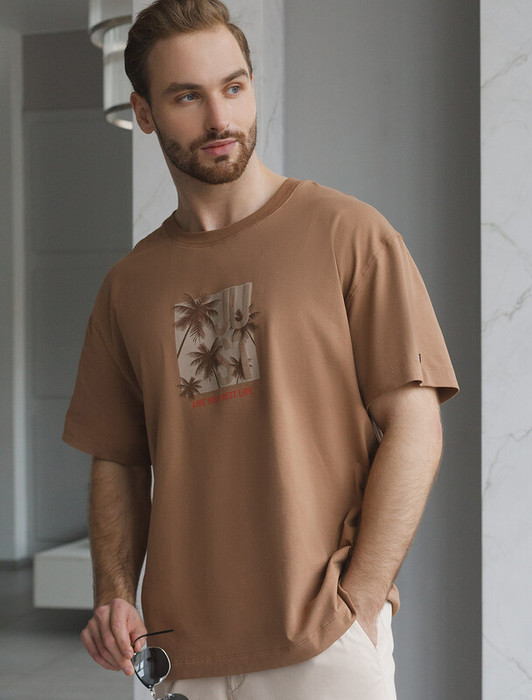 Совместные покупки Нижневартовск Мужская одежда Футболки — Vilatte Свободная футболка с авторским принтом U49.048 коричневый_just