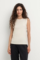 Топ выполнен из трикотажа в широкий рубчик. Эластичный хлопковый трикотаж сидит по фигуре, не сковывает движений и очень комфортный в носке. Фактура вертикальных полос визуально стройнит и вытягивает силуэт. Базовое изделие хорошо впишется в любой гардероб. Идеально подходит для многослойных образов.