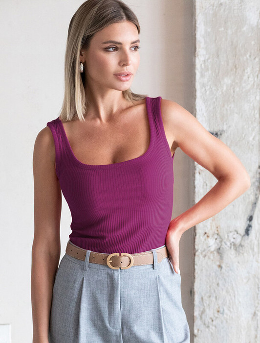 Совместные покупки Нижневартовск Женская одежда Майки, топы — 06.04 Vilatte Топ из трикотажа в широкий рубчик D43.224 пурпурный