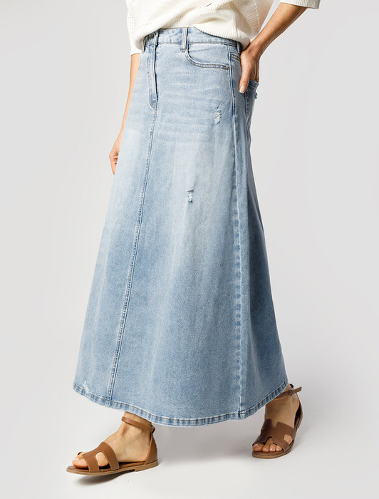 — 22.03 Vilatte Юбка А-силуэта из эластичного денима D56.118 голубой
