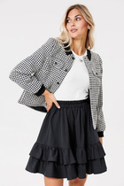 Юбка А-силуэта выполнена из денима с эластаном. Модель с посадкой на талии расширяется к низу за счет вставок из декоративных клиньев, расположенных спереди и сзади. Изделие дополнено пятью карманами как у джинс и брендированным патчем из эко-кожи. Сочетается в комплекте с курткой D51.033