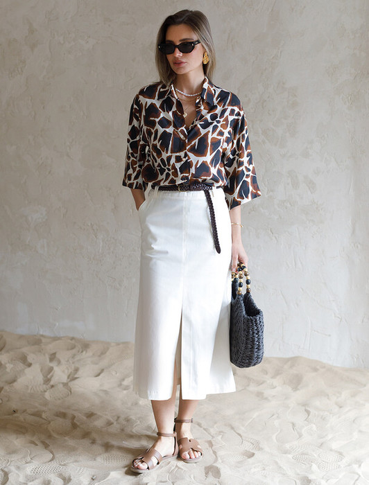 27.03 Vilatte Юбка-миди из хлопка с разрезом D26.182 белый