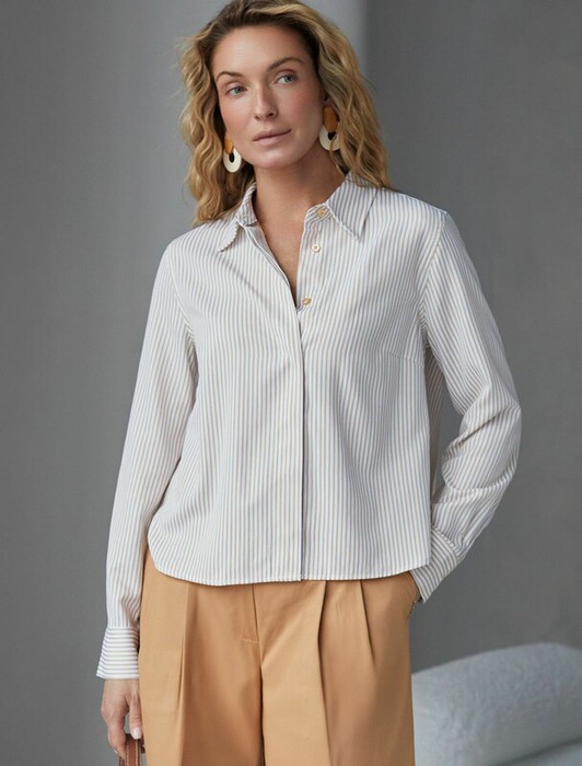 Совместные покупки Нижневартовск Женская одежда Блузки, рубашки — 22.03 Vilatte Укороченная блузка из эластичного хлопка D29.322 белый-бежевый