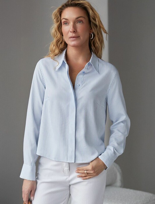 Vilatte Укороченная блузка из эластичного хлопка D29.322 белый-голубой