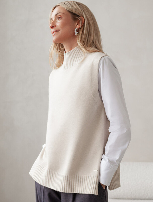 Совместные покупки Нижневартовск Женская одежда Жилеты — Vilatte Жилет из пряжи с кашемиром D37.017 овсяный меланж