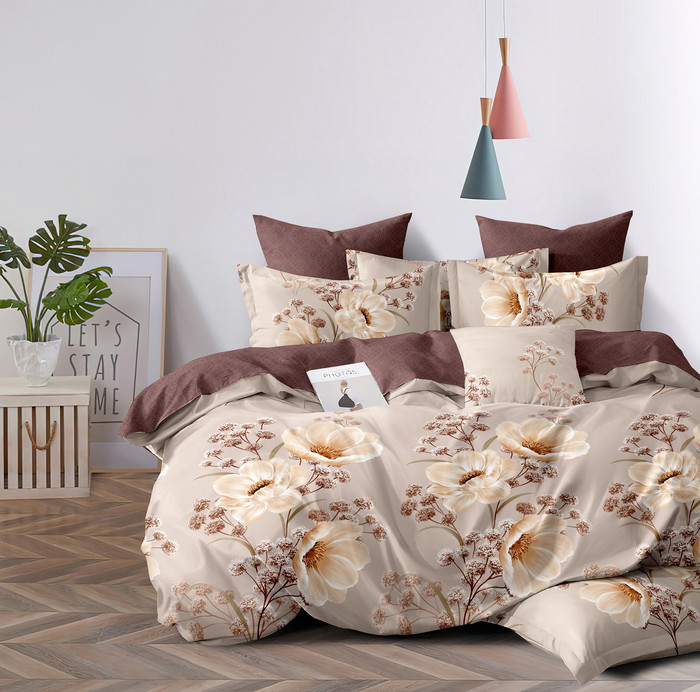 Данное постельное белье изготовлено из двух видов ткани ( пододеяльник-из основы, простыня -из компаньона. Наволочки могут быть изготовлены как из компаньона, так и из основной ткани.)