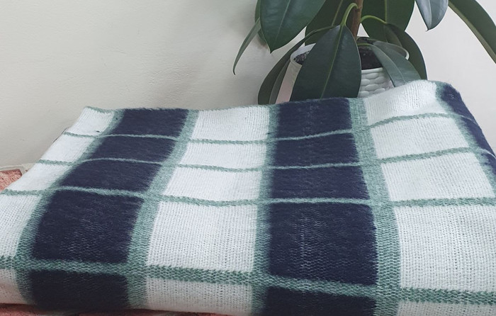 Совместные покупки Нижневартовск Товары для дома и дачи Подушки, одеяла — ВЛАДЛЕН Одеяло полушерстяное (50% Шерсть) Клетка Бело-Сине-Зелёная