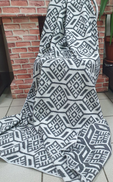 ВЛАДЛЕН Одеяло полушерстяное (70% Шерсть) - Серый ромб