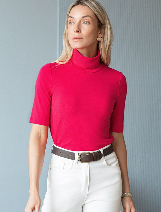Состав: 92%Хлопок 8%ПУ Параметры модели на первом фото: Рост 177, бюст 78, талия 59, бедра 90Базовая водолазка цвета этого года viva magenta с коротким рукавом выполнена из премиального хлопка с добавлением эластичных волокон. Гладкий трикотаж обеспечит гарантированный комфорт и удобство в использовании. На рукаве изделия металлическая нашивка с логотипом бренда. Совет стилиста: водолазку с коротким удобно сочетать с жакетом или блузкой. Также как самостоятельный верх к широким брюкам.