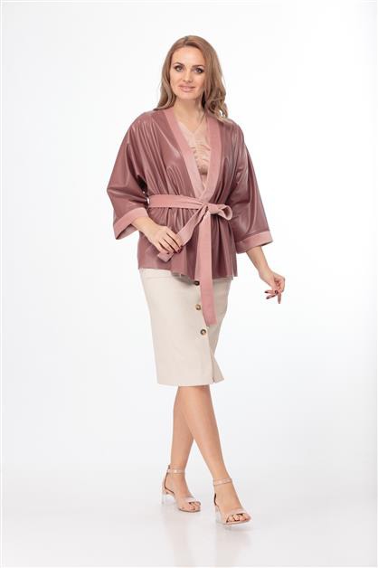 На фото жакет сфотографирован в образе с юбкой из эко-кожи 818 бежевых тонов.