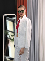 Жакет прямого свободного кроя выполнен из костюмной ткани черного цвета. Характеристики: прямой свободный крой, брендированная подкладка, подплечники, воротник с остроугольным лацканом, застежка центральная на петлю - пуговицу, по переду функциональные карманы с клапаном, рукав к низу расклешен, втачной, чуть спущен, по низу рукава нашиты пуговички, спинка цельнокроеная. Длина по спинке 77, длина рукава от края горловины 84 см.