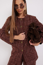 Двубортный жакет на подкладке, прямого силуэта. Обработаны прорезные карманы по переду. Рукава втачные одношовные, обработаны шлицей