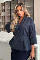Двубортный жакет на подкладке, прямого силуэта. Обработаны прорезные карманы по переду. Рукава втачные одношовные, обработаны шлицей