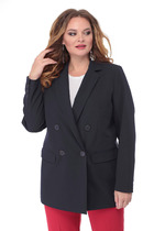 Двубортный жакет на подкладке, прямого силуэта. Обработаны прорезные карманы по переду. Рукава втачные одношовные, обработаны шлицей