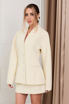 Двубортный жакет на подкладке, прямого силуэта.. Жакет выполнен из плотной пальтовой ткани. Обработаны прорезные карманы по переду. Рукава втачные одношовные, обработаны шлицей