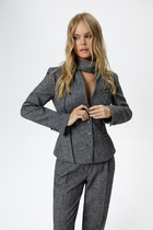 Жакет однобортный свободного силуэта, обработан подкладкой. Рукав втачной, расклешенный, одношовный. По рукаву настрочены рюши из основной ткани. Объём присборенных рюш распределен равномерно. Данный жакет дополнит любой образ, выделит среди всего разнообразия
