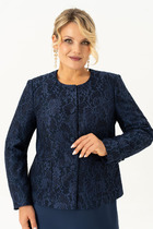 Жакет женский полуприлегающего силуэта с втачным рукавом, воротник-стойка, V-образный вырез горловины, с застёжкой спереди на пуговицы, борта закруглённые. Изделие на подкладке.