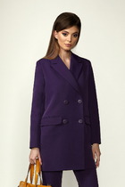 Жакет удлиненный, из текстильной ткани, полуприлегающего силуэта с центральной бортовой застежкой на пуговицы до линии перегиба лацкана. Спереди рельефные швы от плечевого шва, отрезной бочок и карман с клапаном. Спинка с рельефами от плечевого шва. Рукав втачной, двухшовный. Воротник пиджачного типа. Жакет на подкладке, длина по спинке 67 см, длина рукава 62 см