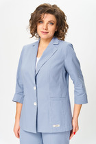 Жакет женский удлиненный, полуприлегающего силуэта с центральной бортовой застежкой на пуговицы до линии перегиба лацкана. Спереди рельефные швы от плечевого шва, отрезной бочок и карман с клапаном. Спинка с рельефами от плечевого шва. Рукав втачной, двухшовный, 3/4, с небольшим разрезом в локтевом шве. Воротник пиджачного типа. Перед жакета на подкладке. Длина рукава 50, длина по спинке 68 см.