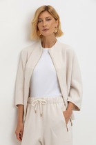 Жакет женский удлиненный, из текстильной ткани, на подкладке, полуприлегающего силуэта с центральной бортовой застежкой на пуговицы до линии перегиба лацкана. Спереди рельефные швы от плечевого шва, отрезной бочок и карман с клапаном. Спинка с рельефами от плечевого шва. Рукав втачной, двухшовный. Воротник пиджачного типа. Длина по спинке 66 см, длина рукава 62 см.