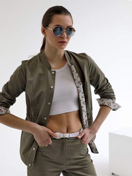 Стильный безподкладочный жакет для женщин и девушек любого возраста прекрасно дополнит гардероб на весну и лето. Низ втачного рукава оформлен манжетой. Застежка выполнена в виде кнопок. Воротник - стойка. Прямой силуэт легко корректируется затяжкой, тем самым подчеркивая линию талии. Карманы прорезные и достаточно удобные. Универсальная длина жакета позволяет сочетать его с брюками, шортами, юбками или платьем. Жакет-куртка из приятной на ощупь плотной хлопковой ткани - комфортная и практичная одежда для прохладного летнего вечера. В нашей коллекции этот легкий жакет хорошо комплектуется с брюками (арт. 25241), выполненными из такого же хлопка.