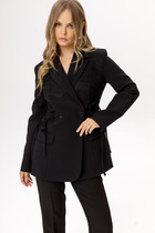 Жакет полуприлегающего силуэт, втачного покроя с центральной застёжкой и классическим английским воротником. Полочка с нагрудной вытачкой, отрезным бочком и прорезным верхним карманом с листочкой. Спинка с центральным швом и плечевыми вытачками. Рукав двухшовный с отлетной шлицей и отделочными пуговицами.