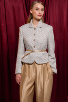 Элегантный жакет полуприлегающего силуэта выполнен из твидовой ткани с флоковой нитью, жакет на подкладке.