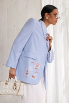 Жакет в  стиле smart casual. Жакет прямого силуэта с пиджачным воротником, имеет удобные накладные карманы и застежку на 2 пуговицы. На левом лацкане вышивка-логотип в цвет ткани. Низ и борта имеют открытые края (эффект необработанного шва), укреплены дополнительной строчкой. Жакет без подкладки.
