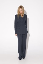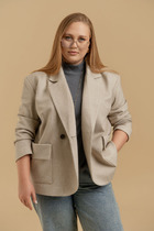 Жакет с центральной застежкой на петли и пуговицы, втачным воротником и лацканом пиджачного типа. По переду с рельефами, выходящими из проймы и нагрудными вытачками. В рельефных швах расположены карманы. По спинке с рельефами, выходящими из проймы. Центральная часть спинки с вышивкой в тон основной ткани. Рукав втачной, длинный.