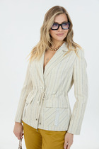 Жакет оформлен тремя декоративными пуговицами, которые подчеркивают лаконичный дизайн, и дополнен накладными карманами — практичный элемент, сохраняющий аккуратный вид даже при активном использовании. Отсутствие подкладки делает эту модель универсальной для теплых дней и переходных сезонов, а свободный крой обеспечивает свободу движений.