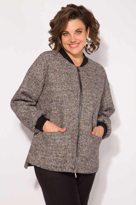 Женский твидовый жакет, по типу бомбера – стильная женская одежда на каждый день, которая станет отличным дополнением повседневного гардероба. Модель свободного силуэта, со спущенной линией плеча. Рукав длинный, с притачными манжетами по низу. Застежка центральная, на металлическую тесьму-молнию. Горловина обработана трикотажной планкой по типу – бомбера. Низ по полочке фигурный, по спинке удлинен. По полочке расположены рабочие карманы в шве! Свободная оверсайз модель подходит практически под любую фигуру. Модель на шёлковой подкладке!
