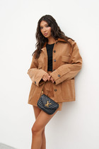 Свободный жакет с застёжкой на петлю и пуговицу. Прорезные функциональные карманы с клапанами. Жакет дополнен яркой подкладкой.