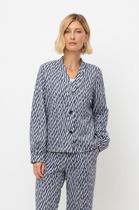 Однобортный жакет на подкладке прямого силуэта с застёжкой на две петли и пуговицы. По талии расположена кулиса и шнурок для приталивания жакета. По переду расположены накладные карманы с клапаном и декором. Длина жакета 68-72 см.