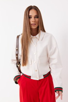 Жакет свободного силуэта с центральнойзастежкой на пришивные кнопки. По переду обраюотаны накладные карманы. Рукав втачной одношовный, из отделочной ткани. Воротник - стойка. Частичная подкладка по переду и спинке.