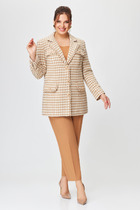 Жакет женский свободного силуэта с втачным рукавом c воротником. По переду накладные карманы и планка на застежку пуговицы. Спинка стачная. Рукав длинный с манжетой на застежку пуговицу. Эту элегантную модель вам будет несложно вписать в гардероб, создавая многослойные образы.
