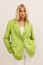 Жакет прямого силуэта с имитацией центральной застёжки на пуговицы. Рукав втачной одношовный, длиной три четверти,застегивающийся на пату. Воротник пиджачного типа . Линия низа фигурная, симметричная . По левому переду расположена декоративная деталь.