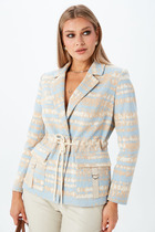 Текстильный классический жакет прямого кроя. Детали: жакет полуприлегающего силуэта, пиджачный воротник, перед с прорезными карманами, двубортная застежка на петли и пуговицы, спинка со средним швом, рукава втачные двухшовные, жакет на подкладке
