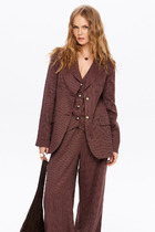 Свободный двубортный жакет из текстильной ткани в клетку.
