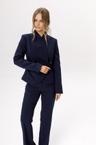 Детали: полуприлегающий силуэт, рельефы переда и спинки, пиджачный воротник, перед с отлетными деталями, застежка на петли и декоративные пуговицы, отрезная линия талии по спинке, втачные длинные рукава со шлицами, жакет на подкладке.