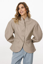 Детали: жакет прямого силуэта, расширенная линия плеч, пиджачный воротник, перед с функциональными карманами, однобортная застежка на петли и пуговицы, спинка со средним швом и шлицей, рукава втачные двухшовные, жакет на подкладке