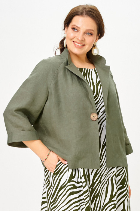 Легкий летний жакет из льна. Свободный без подкладки, рукав реглан. Застежка на одну пуговицу Рукав 3/4 Жакет будет прекрасным дополнением к любым вариантам брюк. Стильный и легкий.